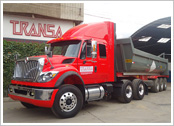 VOLVO and INTERNATIONAL tugs of configuration 6 x 4, with air suspension and super single tires.