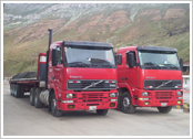 Low-beds with capacity of 40 tons to 50 tons with anchors containers and heavy machinery.